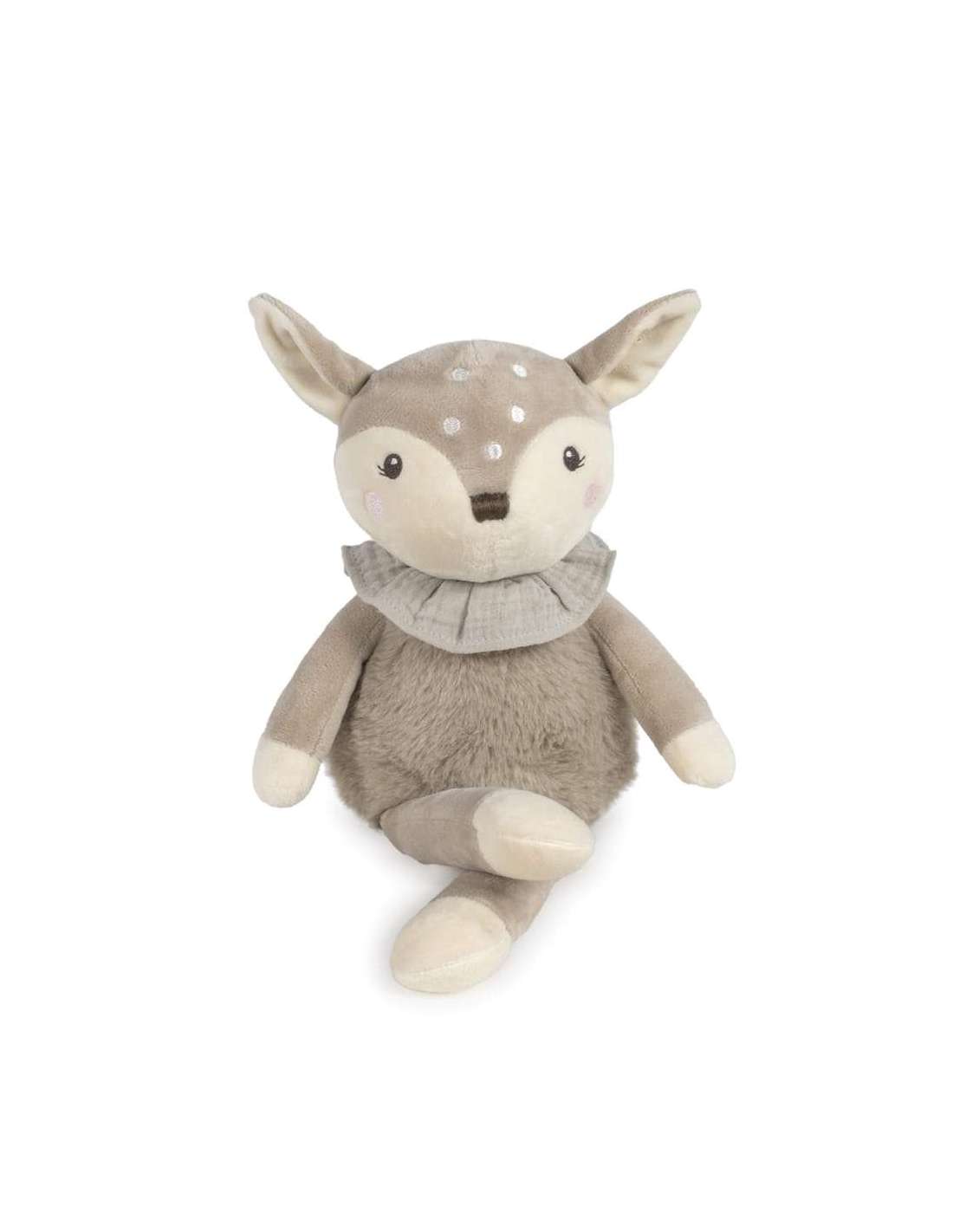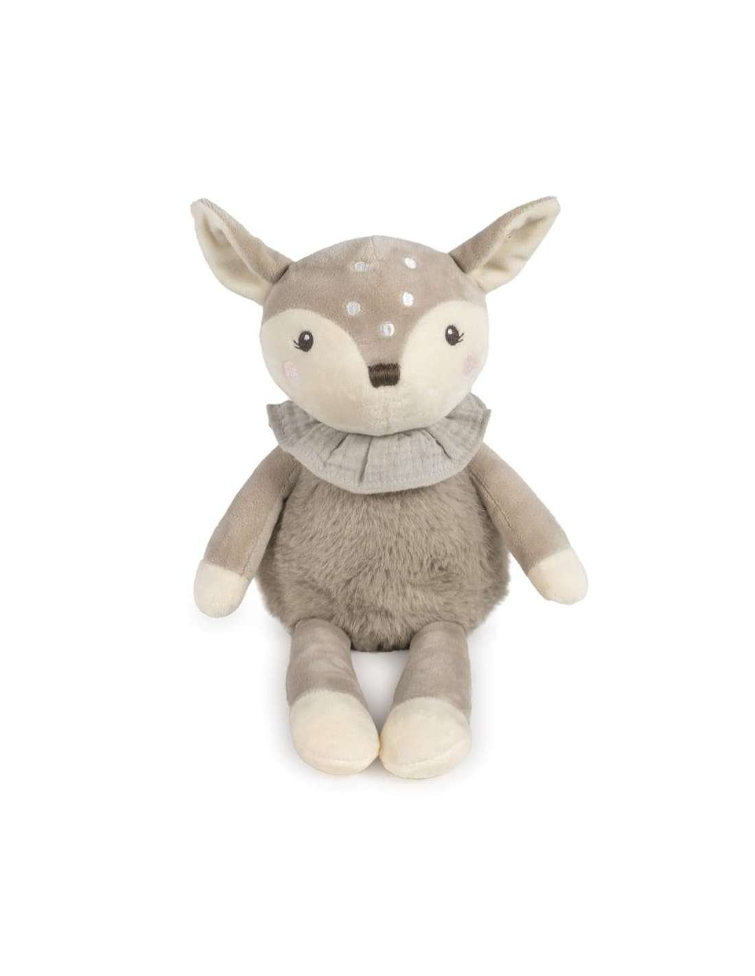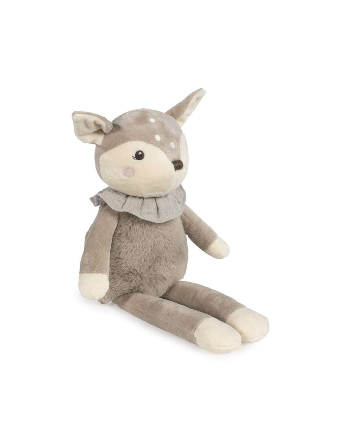Este adorable peluche Nara de Pasito a Pasito está diseñado para ofrecer suavidad, ternura y compañía a tu bebé desde sus primeros días. Inspirado en un dulce ciervo con detalles bordados, sin piezas pequeñas ni elementos duros. Este cervatillo de 38 cm está confeccionado con una combinación de velour y tejido de peluche ultra suave, es perfecto para abrazar, estimular el sentido del tacto y aportar seguridad a los más pequeños. Fácil de sujetar y abrazar, proporcionando confort y compañía. Favorece el desarrollo emocional y sensorial del bebé. Este peluche ciervo Pasito a Pasito es el compañero ideal para momentos de juego y descanso, aportando calma y dulzura al bebé. Limpieza a mano o a máquina a 30 °C. Pasito a pasito protege a tu bebé utilizando los mejores tejidos, libres de colorantes azoicos y sustancias nocivas para la salud.