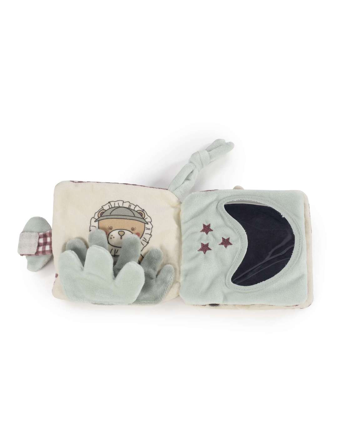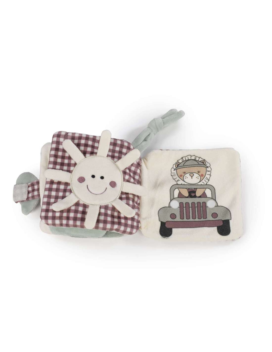 Libro de Actividades de Velour Gala Cerise de Walking Mum ¡Introduce a tu pequeño en un mundo de descubrimiento táctil y aprendizaje lúdico con el Libro de Actividades de Velour Gala Cerise de Walking Mum! Este encantador libro de actividades suave de 12×12 cm, de la adorable colección Gala Cerise, está diseñado para estimular los sentidos de tu bebé y fomentar su desarrollo temprano. Confeccionado con velour, es increíblemente suave y perfecto para que las manitas exploren y agarren. Cada página presenta elementos atractivos que estimulan la curiosidad y las habilidades motoras finas. A tu bebé le encantará descubrir el simpático león asomándose, la luna arrugada con estrellas, el sol brillante y sonriente, y el león aventurero conduciendo un jeep. Las diversas texturas y las vibrantes ilustraciones proporcionan una experiencia multisensorial, promoviendo la exploración sensorial y el desarrollo cognitivo. Ligero y fácil de transportar, este libro de actividades es ideal para jugar en casa o mientras viajan. También cuenta con un práctico lazo para atar, permitiéndote sujetarlo al cochecito o a la silla de coche para un entretenimiento sin fin. Puedes estar tranquilo, este producto cumple con los más altos estándares de seguridad, respetando la normativa EN-71 +0 para juguetes.