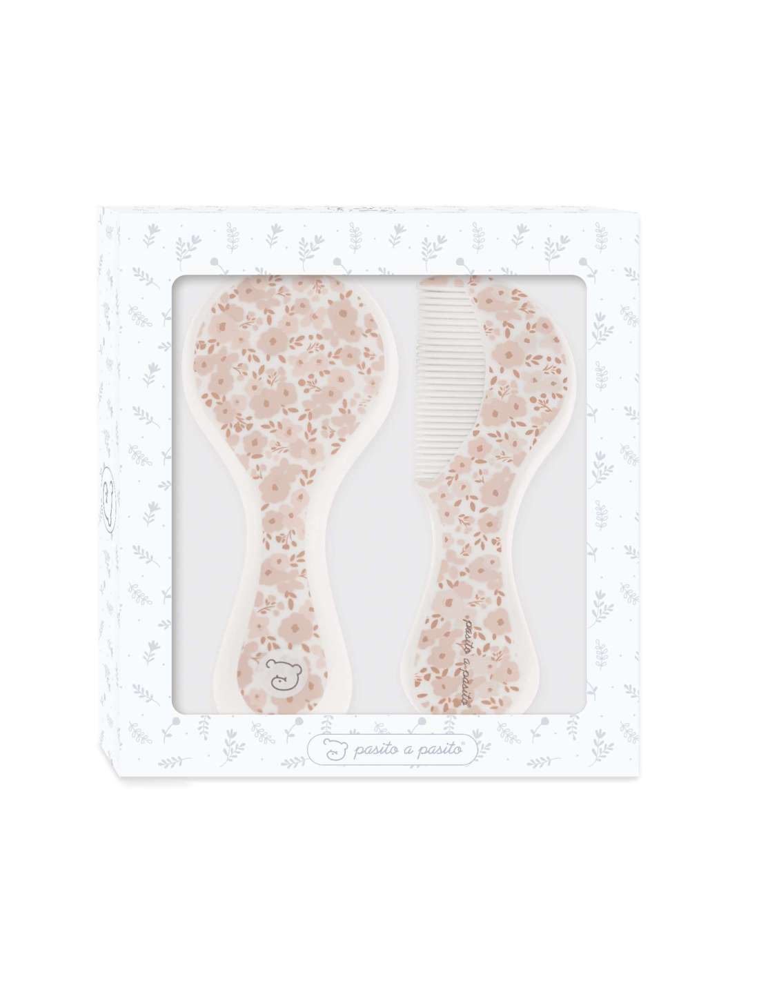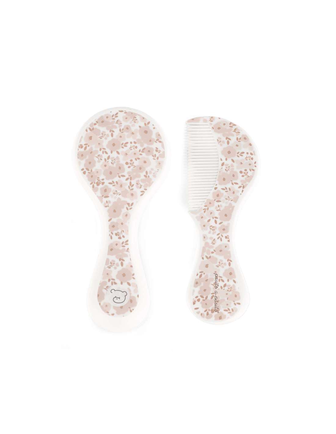 Set de cepillo y peine adecuado para el cuidado del bebé. Decorado con flores rosas. Las fibras del cepillo tienen la suavidad y flexibilidad idónea para no dañar el cabello de tu bebé. Mango ergonómico para un mejor uso. Los productos para bebé de Pasito a Pasito cuentan con un diseño muy diferente a todas las demás. Sus colecciones se caracterizan por el trabajo al detallada, pensadas siempre desde un punto de vista práctico. Utilizan materiales de primera calidad para remarcar la elegancia y la armonía en cada una de sus piezas.