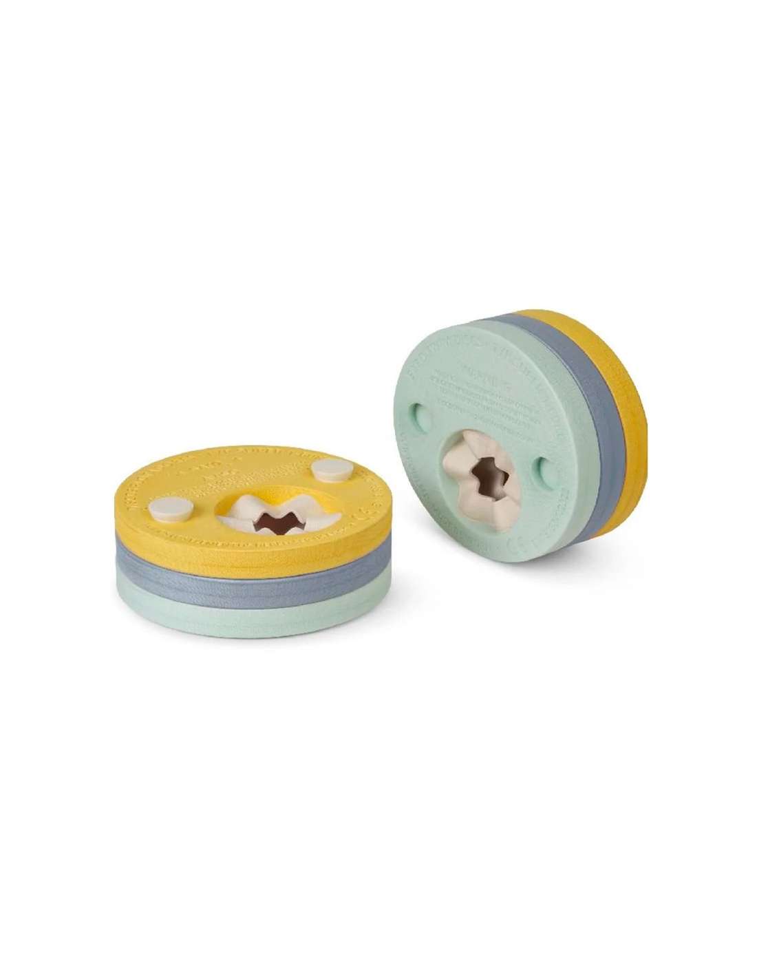¡Son muy fáciles de colocar! Solo hay que pasar el brazo por las abrazaderas elásticas, colocando la parte estrecha del disco bajo la axila. Tu peque estará realmente cómodo ya que son muy ligeros y de tacto suave y blandito.